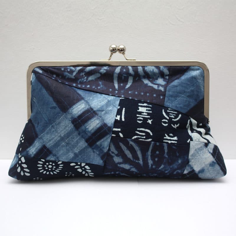 A statement clutch purse made from a mix of Japanese and Nigerian batik in a patchwork style. This one of a kind clutch purse makes a great evening bag or could easily add a nice touch to a more casual look.
